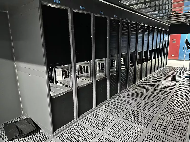 냉기 통로 차폐: 캐비닛 전면은 냉기 통로로부터 밀봉되어 있으며 냉난방 장치 또는 냉동 시스템을 통해 차가운 공기가 냉기 통로에 중앙 집중식으로 공급됩니다.